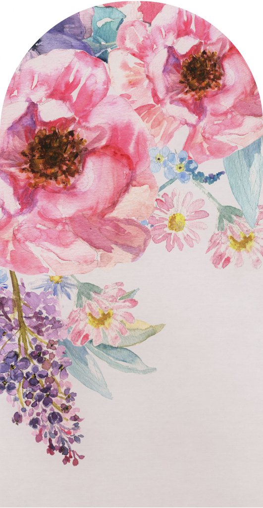 Tapety w kształcie łuku, przygotowane zostały jako dekoracja o wymiarze 130 cm szerokości na 250 cm wysokości.