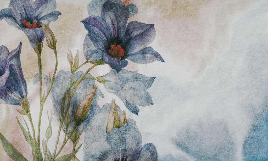 Motywy roślinne, choć na przestrzeni czasu zmieniają swoją estetykę, niezmiennie królują we wnętrzach. Antlia to odważna ilustracja utrzymana w palecie klasycznych niebieskości. Pokaźnych rozmiarów kwiat może stanowić główną dekorację pomieszczenia. Nieco transparentne, subtelnie cieniowane płatki dodają lekkości, dzięki czemu pomimo rozmiarów, Antlia pozostaje eteryczna i nie przytłacza wnętrza.