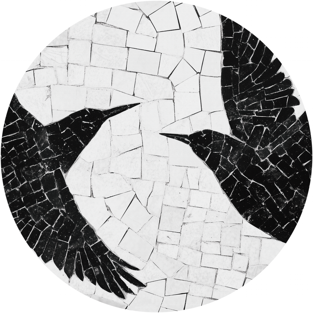 Tapeta „Birds” to propozycja dla miłośników silnej symboliki i graficznych kontrastów. Wzór przedstawia dwie czarne sylwetki ptaków w locie, ułożone z mozaikowych elementów, które przywodzą na myśl zarówno sztukę antyczną, jak i nowoczesne muralowe kompozycje. Dynamiczne układy skrzydeł i napięcie między dwiema sylwetkami tworzą mocny, wyrazisty akcent dekoracyjny – opowieść o wolności, spotkaniu, ruchu i ekspresji.
