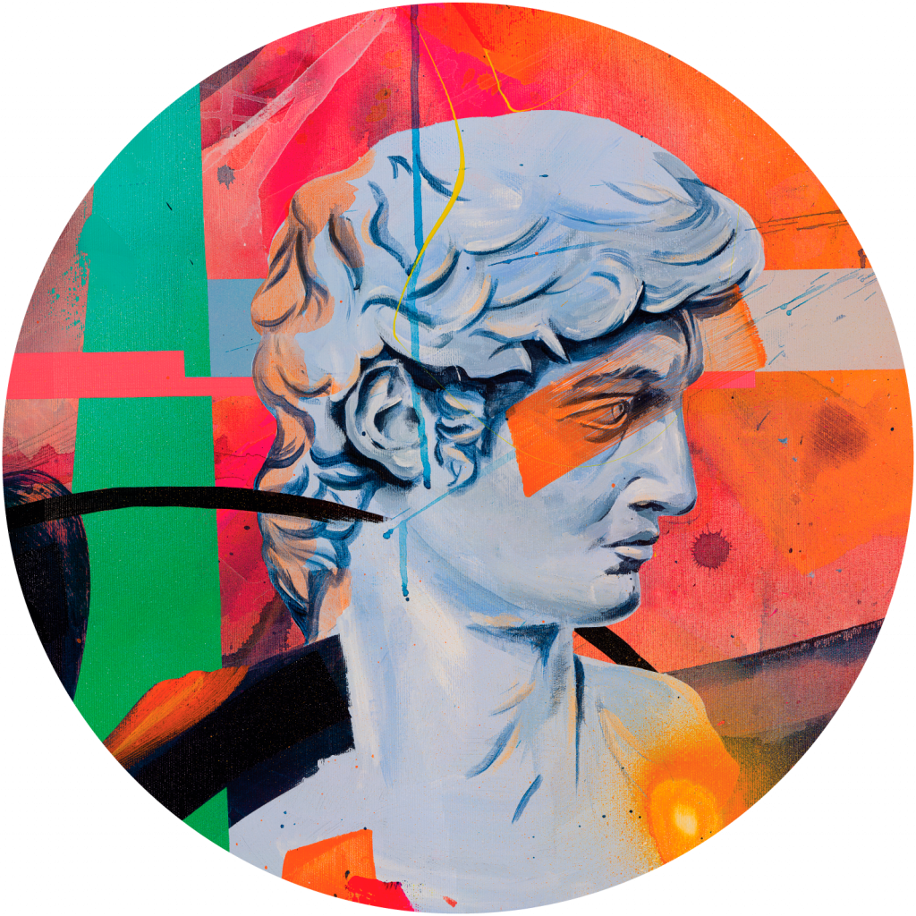 Buenos przedstawia klasyczny profil rzeźby, umieszczony w dynamicznej, abstrakcyjnej kompozycji. Centralnym elementem jest popiersie mężczyzny, którego realistyczne, starannie wyrzeźbione rysy kontrastują z tłem pełnym żywych kolorów i geometrycznych kształtów. Buenos jest zdominowane przez intensywne odcienie pomarańczu, różu, zieleni i błękitu, które tworzą energetyczną i pełną życia atmosferę. Wzór w spektakularny sposób łączy klasyczne piękno rzeźby z nowoczesnymi technikami malarskimi i żywą kolorystyką. Jego dynamiczna kompozycja i kontrastujące elementy tworzą harmonijną, choć złożoną całość, która przyciąga uwagę. Buenos doskonale nadaje się do nowoczesnych wnętrz, gdzie może stanowić główny punkt dekoracyjny, dodając przestrzeni artystycznego sznytu i energii.