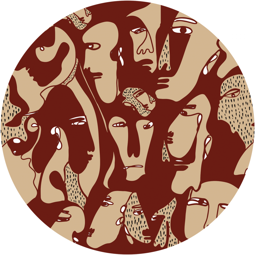 „Faces Burgundy” to wariacja artystycznego wzoru „Faces”, osadzona w zupełnie nowej palecie kolorystycznej. Liczne, nawarstwiające się twarze w stylu line art tworzą intrygującą, pulsującą kompozycję, pełną symboliki, nastroju i wizualnego napięcia. Każda twarz jest inna, każda gra emocją – razem tworzą zaskakująco harmonijną mozaikę tożsamości.