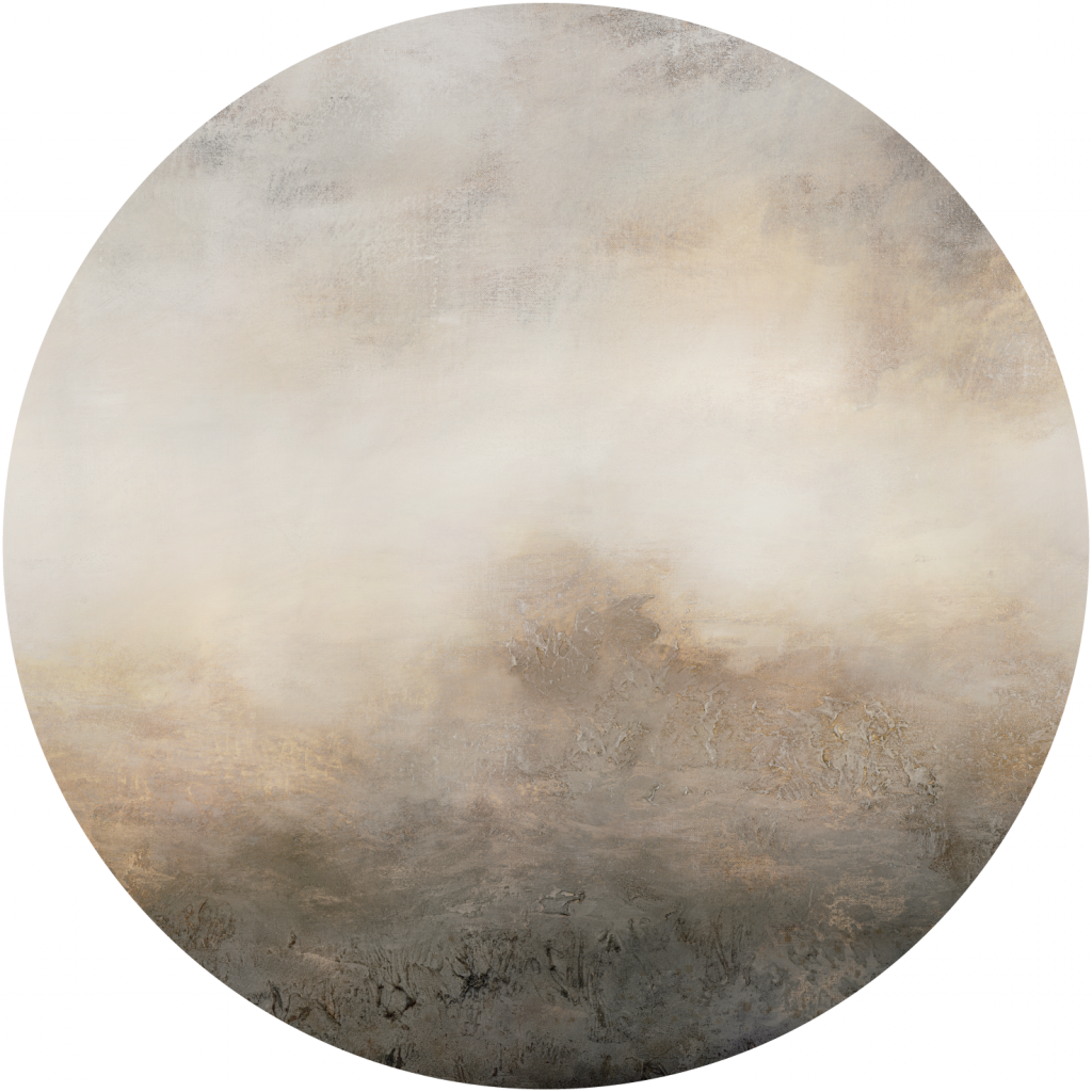 Macchiato w języku włoskim oznacza "poplamiony". Latte macchiato to mleko poplamione kawą. Nieoczywisty pejzaż łąki autorstwa Ewy Mróz przedstawia zapadającą w zimowy sen łąkę zanurzoną w mlecznej mgle. Obraz nieco tajemniczy, ale jednocześnie hipnotyzujący, będzie idealnym uzupełnieniem drewnianego wyposażenia wnętrza.