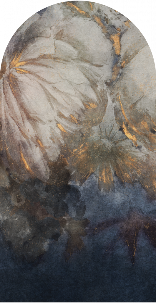 Tapeta Harmony Blue to bestsellerowy klasyczny wzór w barwach granatu, szarości, złamanych beżem i kolorach złota. Idealne uzupełnienie aranżacji w małych wnętrzach, pasuje do stylu boho, naturalnego, nowoczesnego i klasycznego.