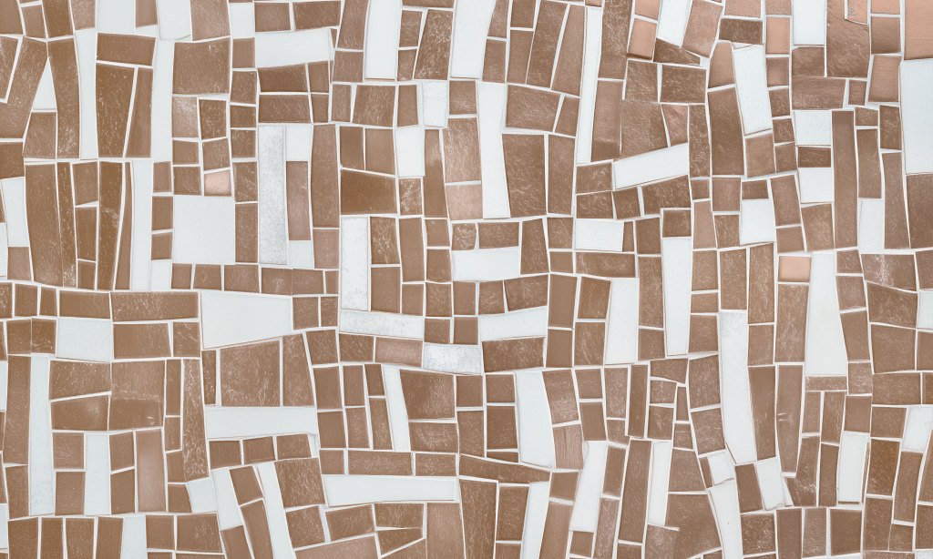 „Mosaico Light” wyróżnia się paletą jasnych, pudrowych odcieni różu, beżu i bieli, które przełamane są przez matowe i satynowe niuanse delikatnej miedzi oraz perłowe refleksy. To zestawienie kolorów nadaje tapecie kobiecego, lekkiego i ciepłego charakteru, jednocześnie pozostając eleganckim i stonowanym.