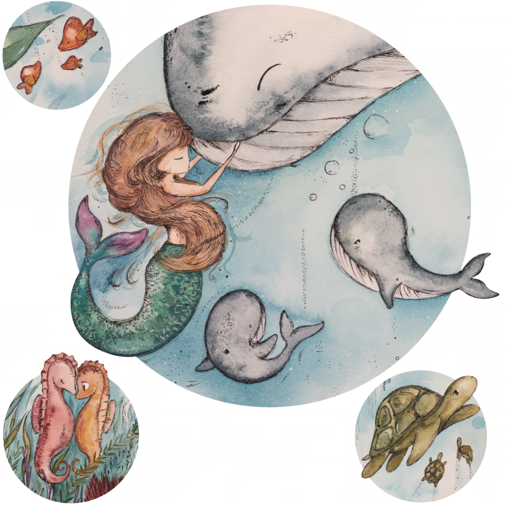 Poznajcie baśniowy, morski świat dla najmłodszych. Stonowane, pastelowe barwy wzoru pozwolą na subtelną, ale nie nudną aranżacje pokoju dla dziecka w każdym kolorze. Idealnie wpasuje się w nowoczesne wnętrze lub urządzone w stylu naturalnym czy boho.