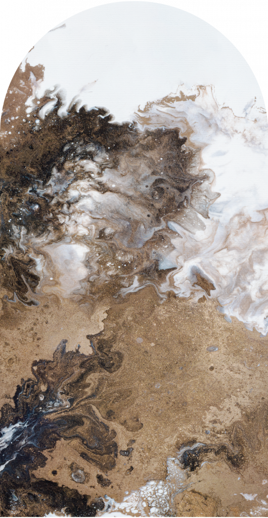 Tapeta Lungo - ręcznie malowana przez artystkę w formie obrazu, w barwach ziemi. Przepiękna kompozycja beżu, brązu, bieli i czerni, kojarzy nam się z procesem parzenia kawy. Idealnie wpisuje się we współczesne trendy designu, gdzie królują przejścia kolorystyczne na bazie watercoloru.