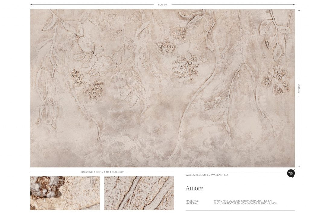 Amore przedstawia subtelną, monochromatyczną kompozycję inspirowaną naturą. Dominujące delikatne, wypukłe wzory przedstawiające gałęzie, liście i kwiaty, które zostały misternie wkomponowane w tło o delikatnej, piaskowej fakturze. Całość utrzymana jest w ciepłych odcieniach beżu, co nadaje obrazowi elegancji i spokoju. Dzięki swojej neutralnej kolorystyce i delikatnemu wzornictwu, Amore idealnie nadaje się do wnętrz urządzonych w stylu klasycznym, skandynawskim czy boho. W zestawieniu z naturalnymi materiałami, takimi jak drewno, len czy bawełna, obraz będzie doskonale współgrał, podkreślając organiczny charakter wnętrza.