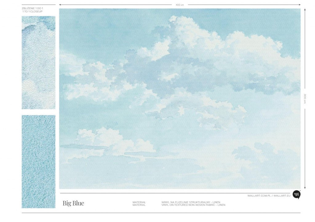 Big blue to delikatny wzór w kolekcji Nature. Delikatne błękitne niebo to ciekawa propozycja do dekoracji ściany, ale i sufitu. Pięknie sprawdzi się w łazienkach, sypialni, salonie czy pokoju nastolatki. Będzie to również ciekawa propozycja do dekoracji mebli.