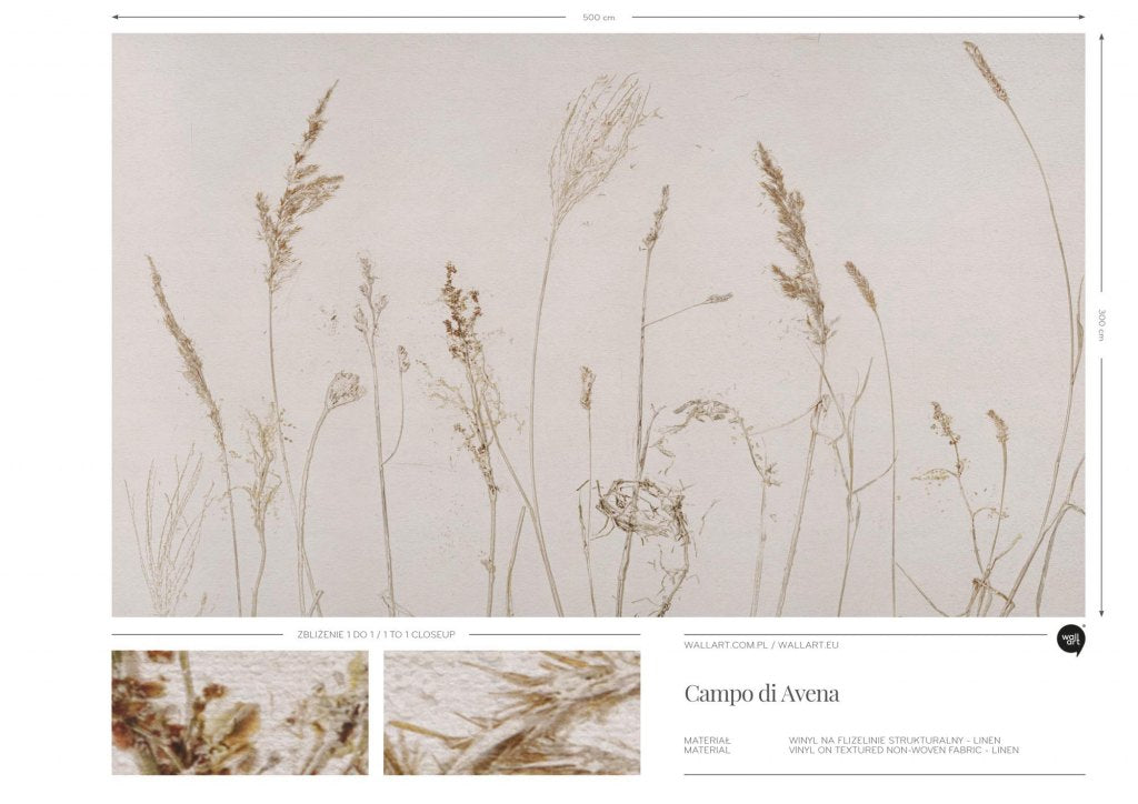 Kolekcja ręcznie malowanych grafik przez Pracownię Annowa - premierowy wzór tapeta Campo di Avena - z włoskiego pole owsa. Wzór stworzyła natura - w specjalną strukturę zostały zatopione polne kwiaty i trawy, a całość została pomalowana na kolor kremowy. Tak powstał ten minimalistyczny wzór w stylu boho i skandynawskim.