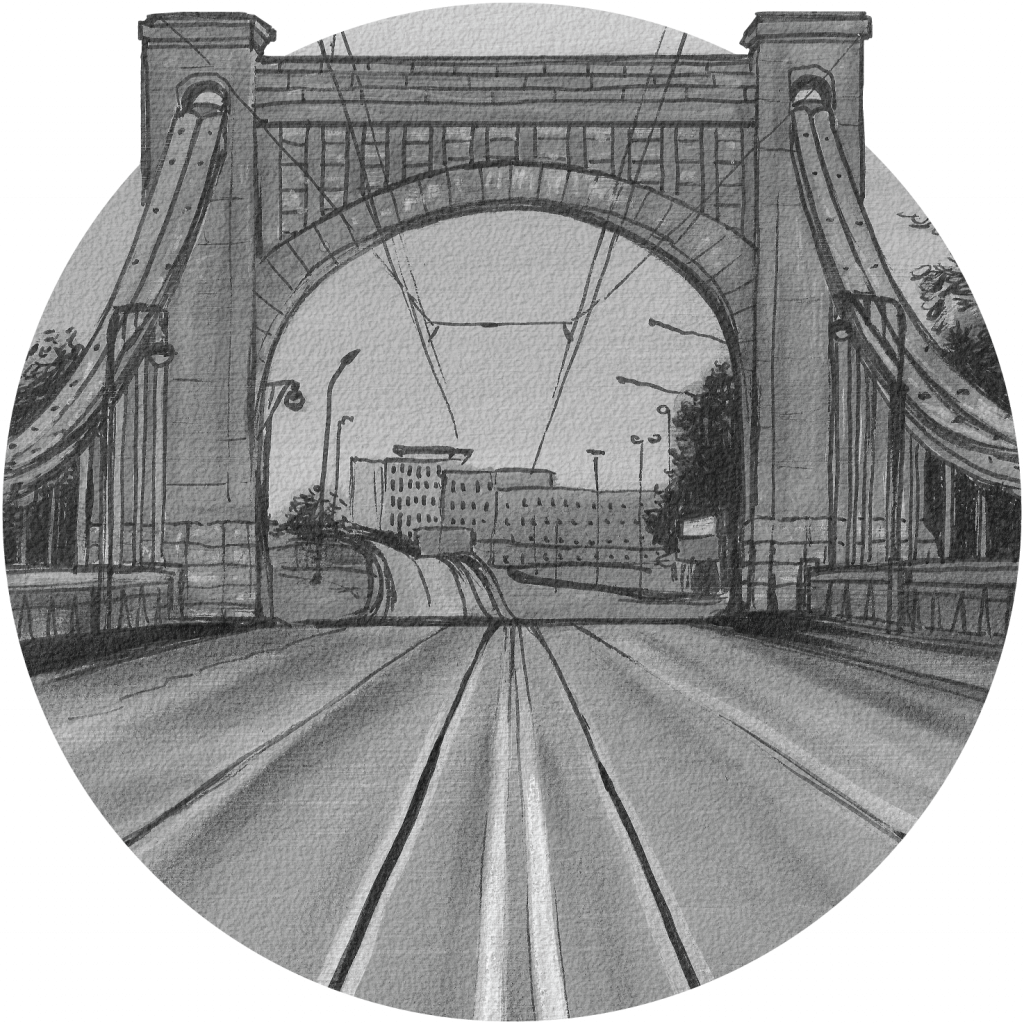 Bridge przedstawia jeden z najbardziej znanych wrocławskich mostów - Grunwaldzki. W 1904 roku ogłoszono konkurs na projekt mostu, który połączy oba brzegi rzeki w pobliżu obecnego placu Grunwaldzkiego. Do udziału w konkursie zgłoszono blisko 40 projektów, a zwyciężył koncept architekta Martina Mayera i inżyniera Roberta Weyraucha. Niegdyś zwany Kaiserbrucke czyli Most Cesarski, powstał w 1910 roku. Most powstał w dwa lata, a ważył ponad 2 tysiące ton i miał 20 metrów szerokości. Podczas próby wytrzymałościowej na moście ustawiono 24 tramwaje oraz wozy straży pożarnej.