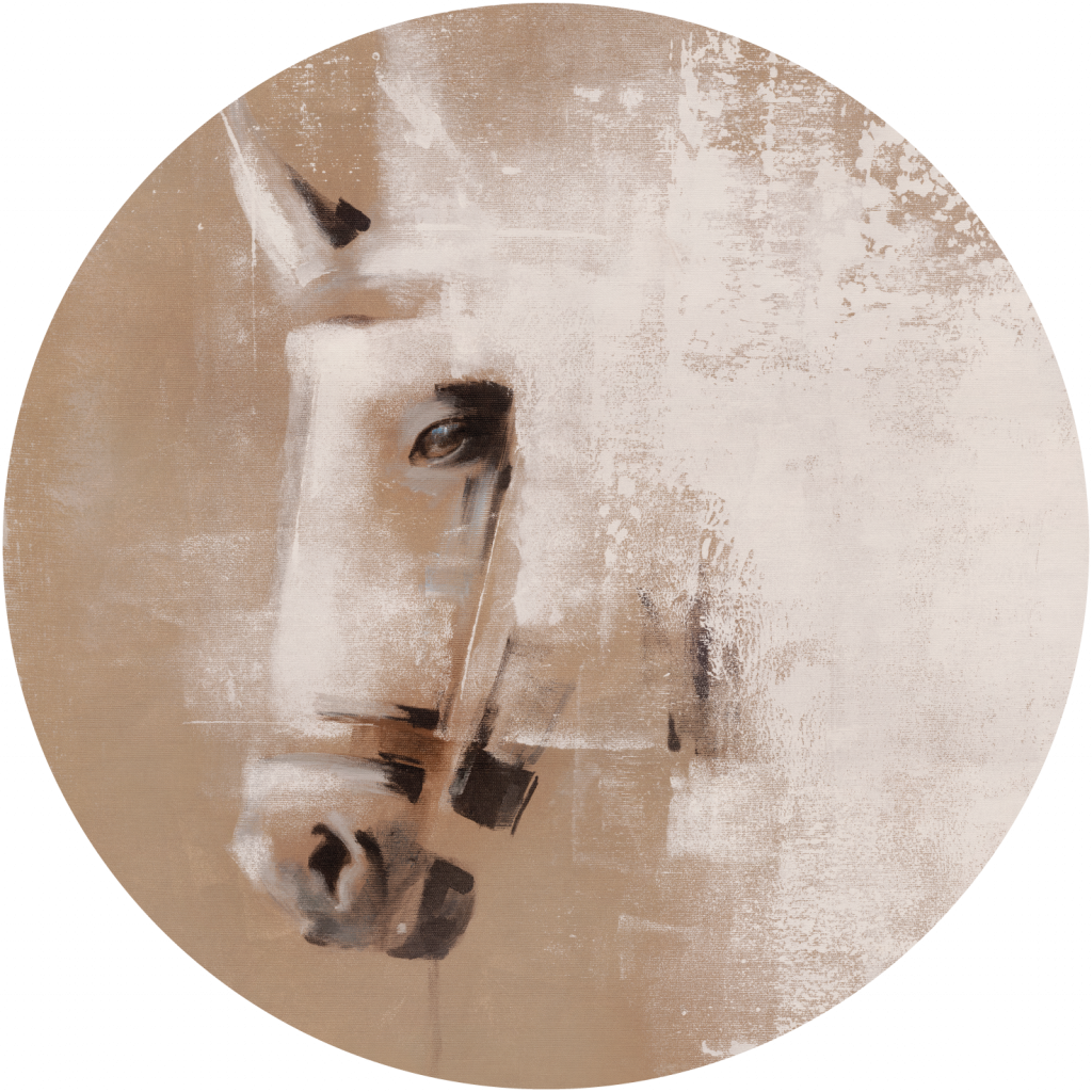 Obrazy o tematyce hippicznej nie tracą na popularności i atrakcyjności od lat. Odejście od tradycyjnego, dosłownego wizerunku konia otwiera ogrom aranżacyjnych możliwości. Białe przecierki oraz ciepłe stonowane tło dodają Cavallo nowoczesności i umożliwiają zastosowanie go w większości współczesnych pomieszczeń.