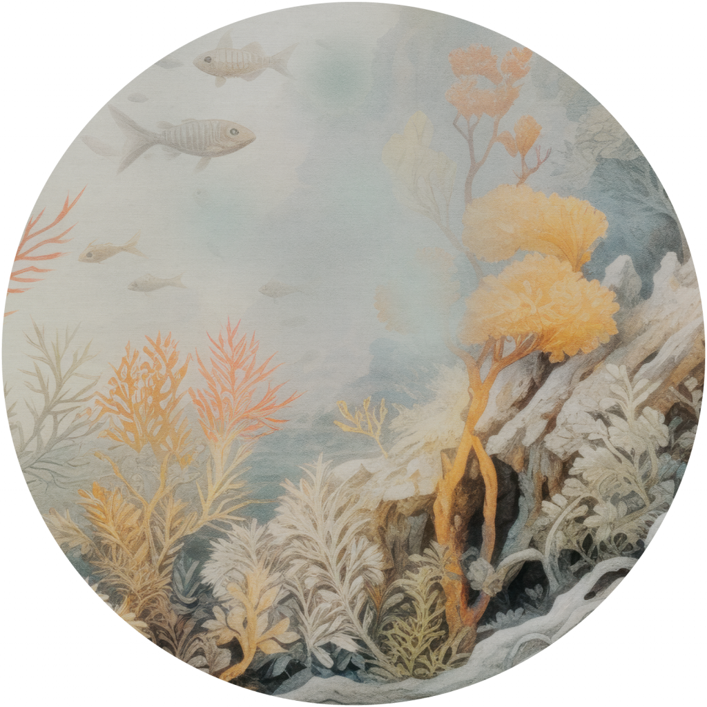 Corallium to długo oczekiwany wzór z motywem podwodnego świata. Dzięki zastosowaniu stonowanej, pastelowej kolorystyki, krajobraz z głębin ciepłego morza nie jest nachalny i w bardzo delikatny sposób wprowadzi do wnętrza spokój jaki daje obcowanie z podwodną naturą.