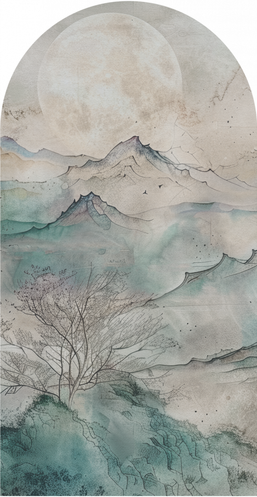 „Sapporo” to poetycka interpretacja krajobrazu inspirowanego klasycznym japońskim malarstwem tuszem. Wzór przedstawia sekwencję miękko pofalowanych górskich grzbietów, wijących się niczym spokojne fale, które przeplatają się z subtelnymi liniami drzew i rozproszonymi plamami tuszu. Na dalszym planie pojawia się dyskretna, eteryczna tarcza księżyca, dodająca całości atmosfery ciszy i kontemplacji. Rysunek jest lekki, nasycony detalem i jednocześnie otwarty – jakby rozciągał się nieskończenie poza ramy kompozycji. Uwagę przyciąga linearny szkic koron drzew i cieniowane, półtransparentne warstwy, które nakładają się niczym delikatne mgły. To wzór pełen spokoju, harmonii i medytacyjnego charakteru, który pozwala na moment zatrzymać się w codzienności.