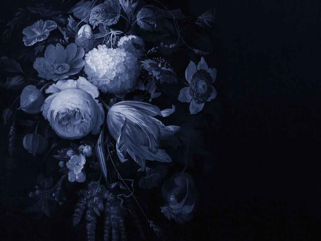 Boudoir Navy jest bogato zdobionym wzorem kwiatowym inspirowanym obrazem Abrahama Mignona. Duże kwiaty, obfite kształty zaprezentowane w odcieniach Granatu i niebieskiego, tworzą prawdziwe dzieło sztuki na ścianie.