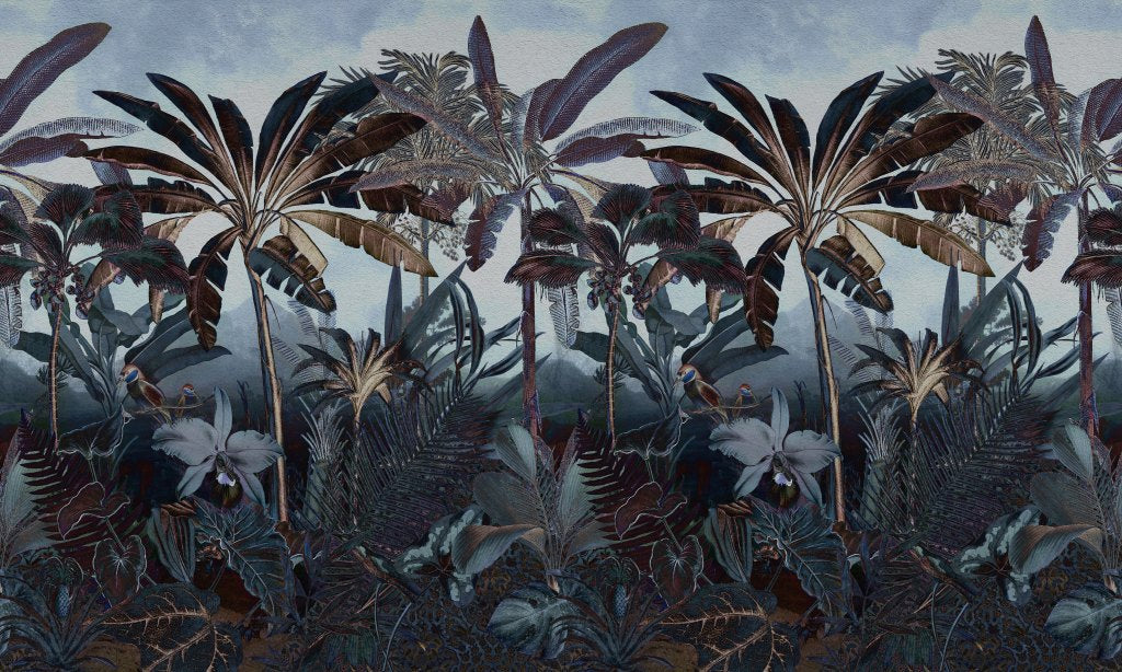 Robinson Crusoe to kultowa powieść podróżniczo-przygodowa opowiadająca o latach spędzonych na bezludnej wyspie. Zainspirowani historią Robinsona stworzyliśmy wzór jego imienia, nieco mroczny, tajemniczy, ale jednocześnie egzotyczny. Wysokie palmy optycznie podwyższą pomieszczenie, a niekonwencjonalna kolorystyka wzoru umożliwi skomponowanie go we wnętrzach, w których nie chcemy używać zieleni. Robinson to wzór, którego pierwszy plan jest mocny, przyciągający wzrok, który zyskuje lekkość poprzez drugi plan i widok zamglonych gór.
