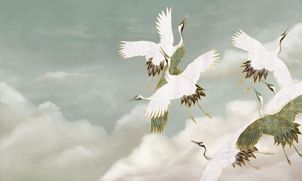 Sage Tsuru, to nowa wersja kolorystyczna popularnych Żurawi, które dostępne są już w kilku różnych odcieniach. Delikatny wzór w kolorach kremu i szałwii, w połączeniu z majestatycznymi ptakami, w odcieniach złota, nada każdemu wnętrzu przytulności, ale i elegancji. Wzór w kolekcji Nature, inspirowany sztuką. Tsuru - w tradycji japońskiej jest symbolem szczęścia i długowieczności, ale również według niektórych źródeł honoru i lojalności.