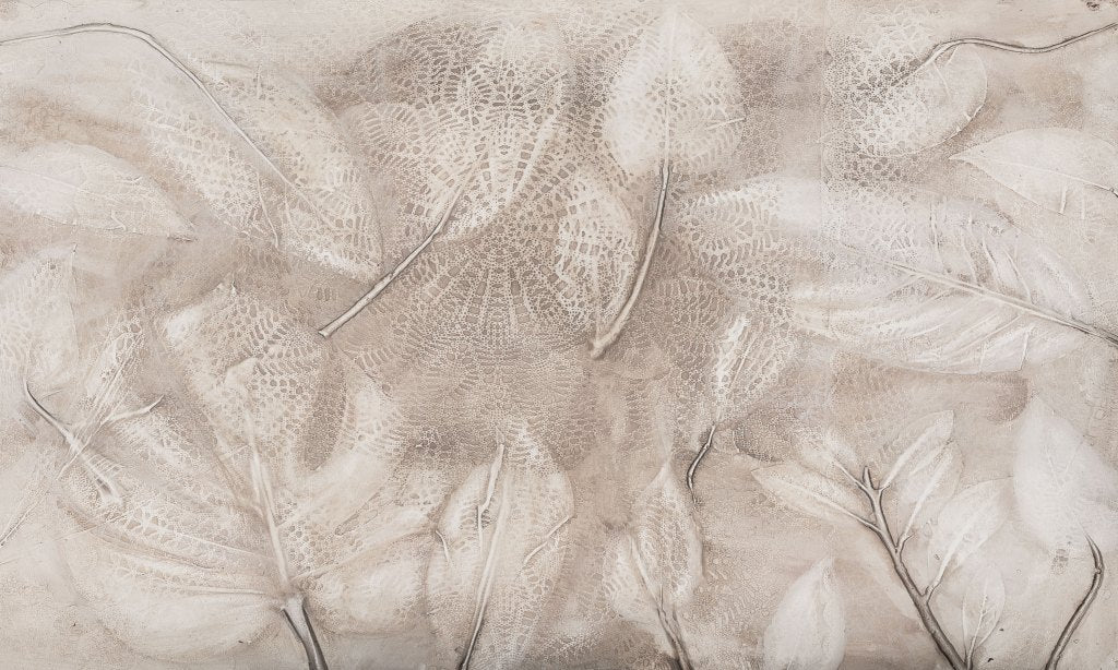 Tapeta „Vento” to poetycka interpretacja natury – subtelny kolaż liści, których finezyjne unerwienie i struktury zostały utrwalone w dekoracyjnej fakturze przypominającej koronkowy odcisk. Wzór przywodzi na myśl rośliny poruszane lekkim wiatrem – stąd nazwa inspirowana włoskim słowem „vento”, czyli wiatr. Dzięki technice tworzenia faktury bezpośrednio na powierzchni, liście zyskują niezwykłą lekkość i głębię – wyglądają niemal jak wydrapane w tynku.