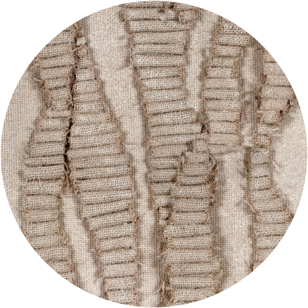 „DNA” to wzór inspirowany pierwotną geometrią natury, nawiązujący formą do spirali życia, korzeni oraz struktur organicznych. Delikatnie wypukłe pasy – przypominające skręcone włókna lub warstwowe sploty materiału – układają się w pionowe linie o nieregularnym, dynamicznym rytmie. Ich struktura tworzy subtelny relief, który buduje wrażenie ruchu i głębi. Tekstura wzoru przywołuje skojarzenia z ręcznie tkanym płótnem lub korą drzewną, jednocześnie pozostając minimalistyczna i nowoczesna. To doskonałe połączenie sztuki rzemiosła z nowoczesnym designem.