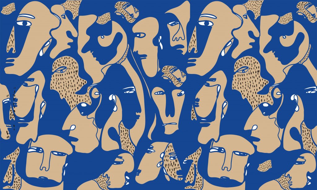Tapeta „Faces Cobalt” idealnie sprawdza się w przestrzeniach: