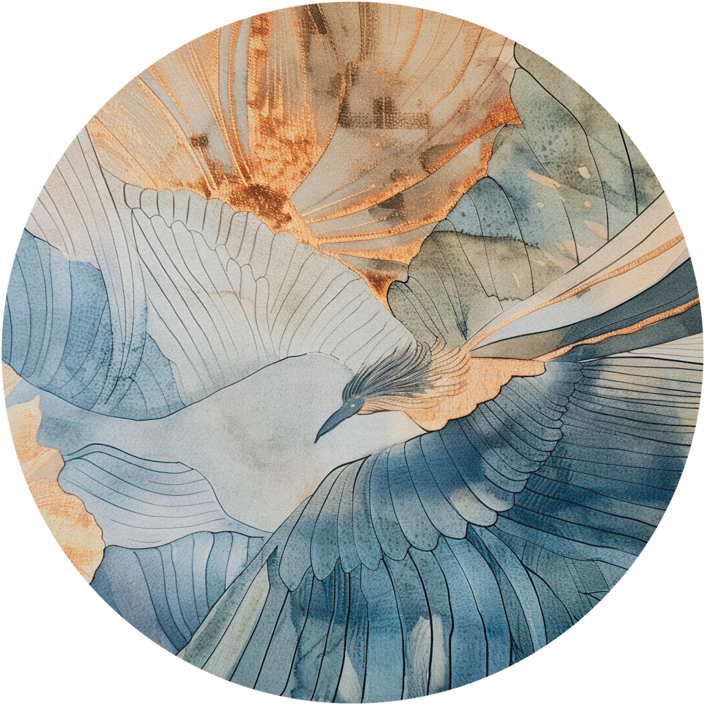 Tapeta „Fenix” to niezwykle ekspresyjna kompozycja inspirowana symboliką feniksa – ptaka odrodzenia, siły i światła. Delikatnie zarysowane kontury skrzydeł rozciągają się niczym wachlarze w powietrzu, a ich płynność przypomina ruch akwareli na papierze. W centrum kompozycji rozpościera się sylwetka ptaka, który z gracją przemyka pomiędzy płatkami i smugami światła.