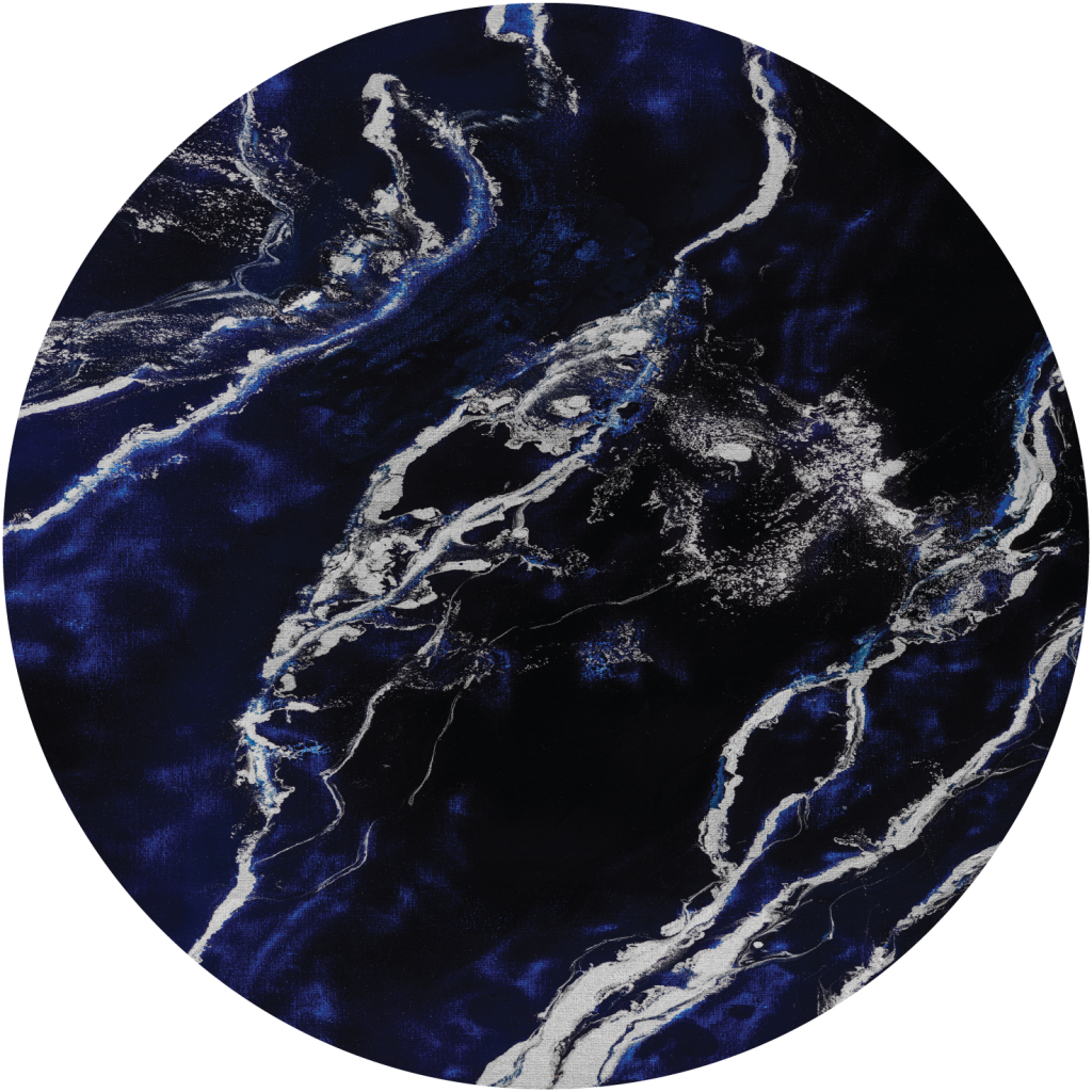 Hades- starożytny bóg podziemia, a w ziemi woda ma swoje źródła... Motyw kamienia - niebieskiego marmuru, przeszywany srebrnymi żyłami niczym strumieniem wody. Odważny, intensywny wzór w odcieniach granatu, ultramaryny i kolorze srebra. Świetnie sprawdzi się w sypialni, salonie, łazience i kuchni.