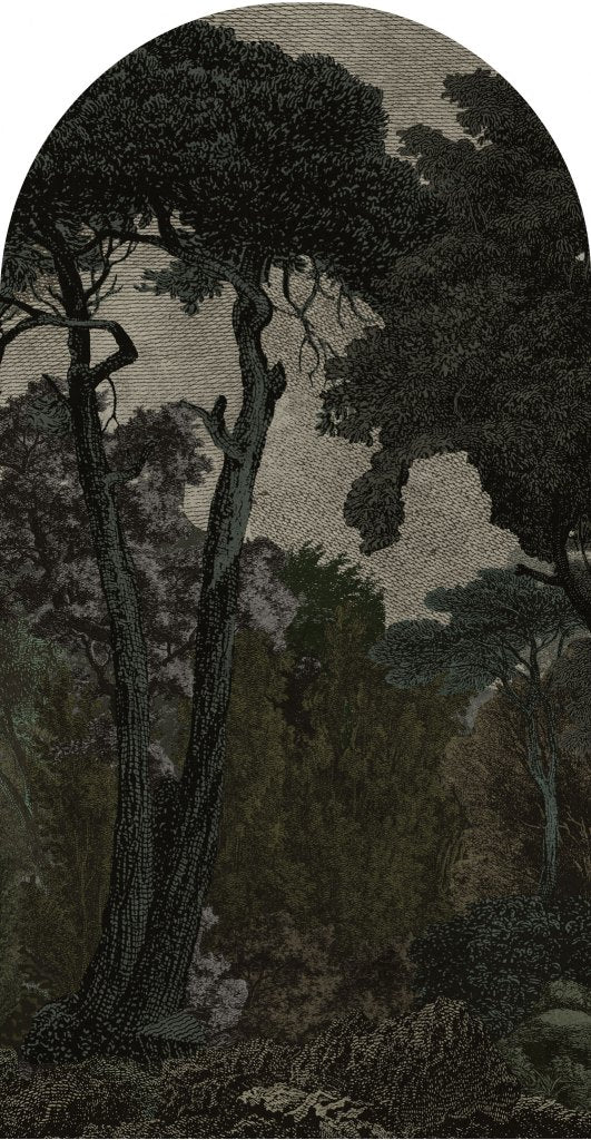 Otoczeni przez rozrastającą się miejską dżunglę, poszukujemy azylu we własnych domach, tworząc przestrzenie zbliżające nas do przyrody. Hood Dark wprowadzi do wnętrza las w niezwykle eleganckim, nieco kolonialnym wydaniu. Widok nawiązujących do starych rycin przedstawia dziki, niezbrukany ludzką ręką starodrzew. Głębokie zielenie będą idealnym uzupełnieniem zarówno drewnianych mebli jak i przełamanie nowoczesnych szarości. Perspektywa uchwycona w pejzażu sprawi, że wnętrze nabierze głębi i optycznie się powiększy.
