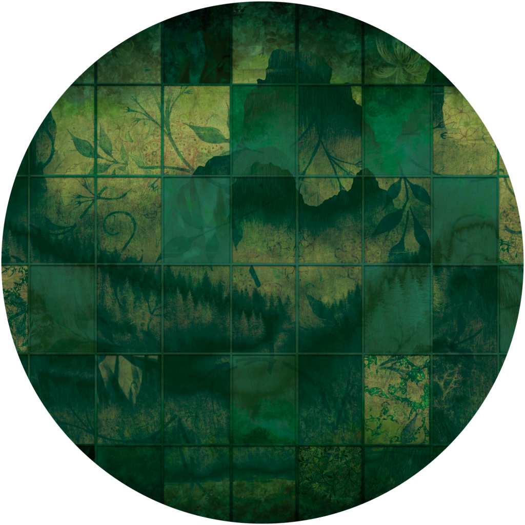 Mattonelle przedstawia nieco abstrakcyjną i złożoną scenę, której głównym motywem jest natura, ukazana w różnych odcieniach zieleni. Cała kompozycja jest geometrycznie podzielona tworzące efekt industrialnych okien. W każdym z kwadratów widoczne są różnorodne detale krajobrazu, które razem tworzą spójny obraz, na którym można dostrzec sylwetki gór, które wznoszą się w tle, tworząc malowniczy pejzaż. Kolorystyka Mattonelle jest stonowana, z dominującymi odcieniami zieleni, od ciemnych, głębokich tonów po jaśniejsze, niemal pastelowe. Tło jest delikatnie teksturowane, co dodaje głębi i złożoności. To znakomity wybór do sypialni jak również jako centralny punkt salonu.