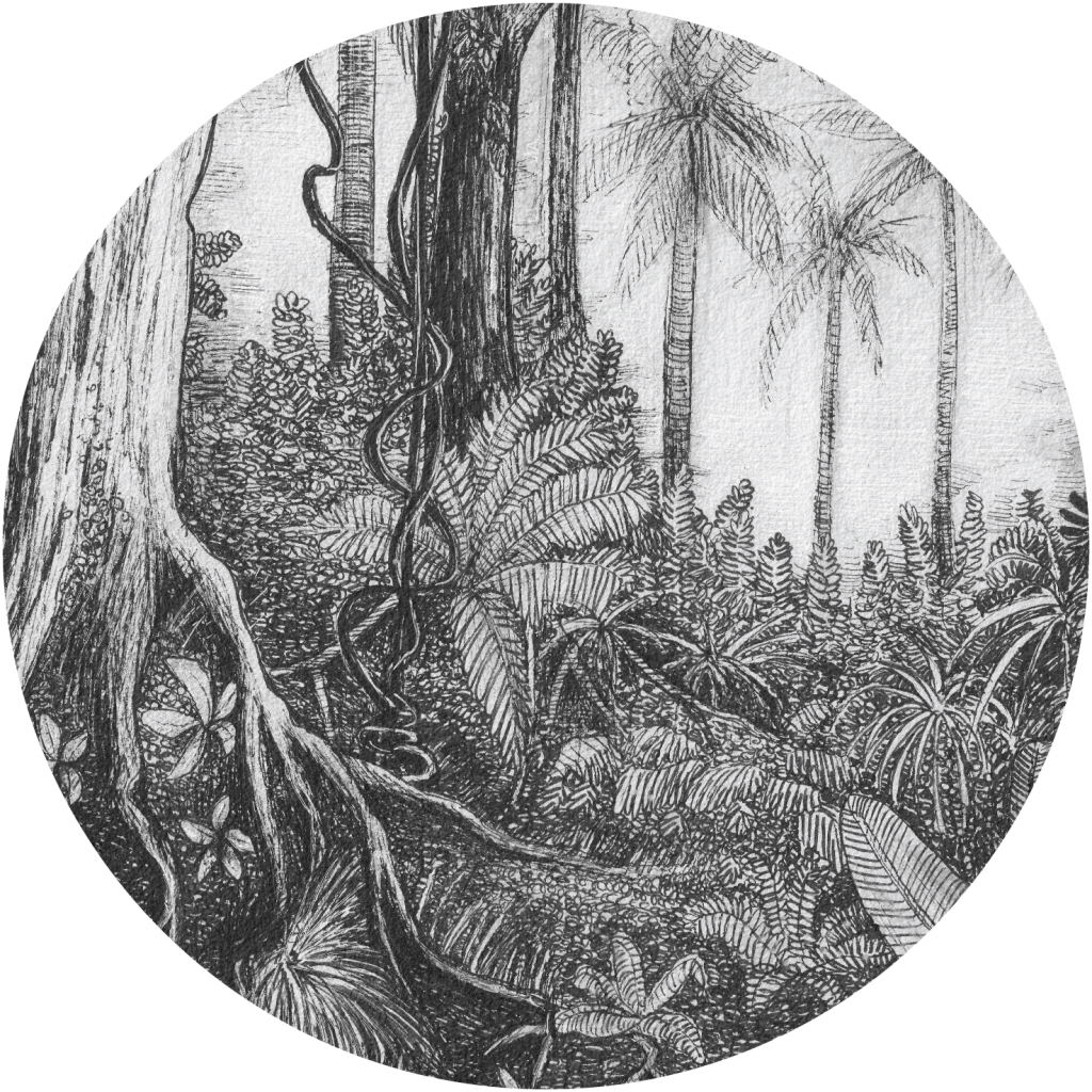 Ness to ręczny rysunek nieco mrocznego, tropikalnego lasu. Perspektywa uchwycona z warstwy gruntowej, daje poczucie monumentalności drzew i znakomicie odzwierciedla wyjątkowo bujne poszycie krzewów i zarośli. Najniższe piętro lasu, skrywające swoje tajemnice w chwilami nieprzeniknionym cieniu, stwarza atmosferę tajemnicy.