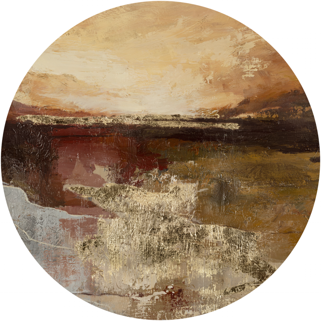 Paleta opiera się na zgaszonych odcieniach ochry – brązach – rudościach – beżach – srebrzystych szarościach oraz subtelnych złotych akcentach, które dodają całości elegancji i szlachetnego blasku. Ciepłe barwy wprowadzają harmonię do wnętrza, a chłodniejsze tony równoważą kompozycję, tworząc spokojny, nastrojowy efekt.