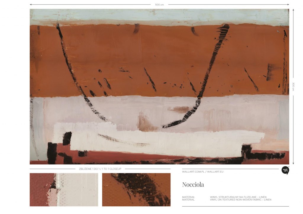 Nocciola to kwintesencja ostatnich trendów kolorystycznych. Wzór łączący w sobie rudości, zgaszone róże, szare błękity i czerń to perfekcyjny kompromis pomiędzy chęcią posiadania mocnych kolorów we wnętrzu i nieco delikatniejszych, eterycznych barw.