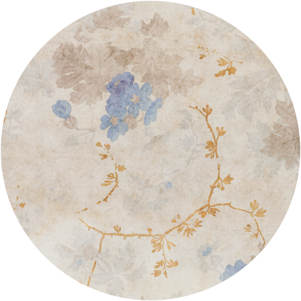 Origin to wzór inspirowany sztuką, w kolekcji Nature. Malownicze kwiaty - niezapominajki z delikatnymi łodyżkami i pączkami liści, w stonowanych barwach kremu i beżu, przełamane zgaszonym niebieskim, z detalami w barwach złota, ozdobią niejedno wnętrze.