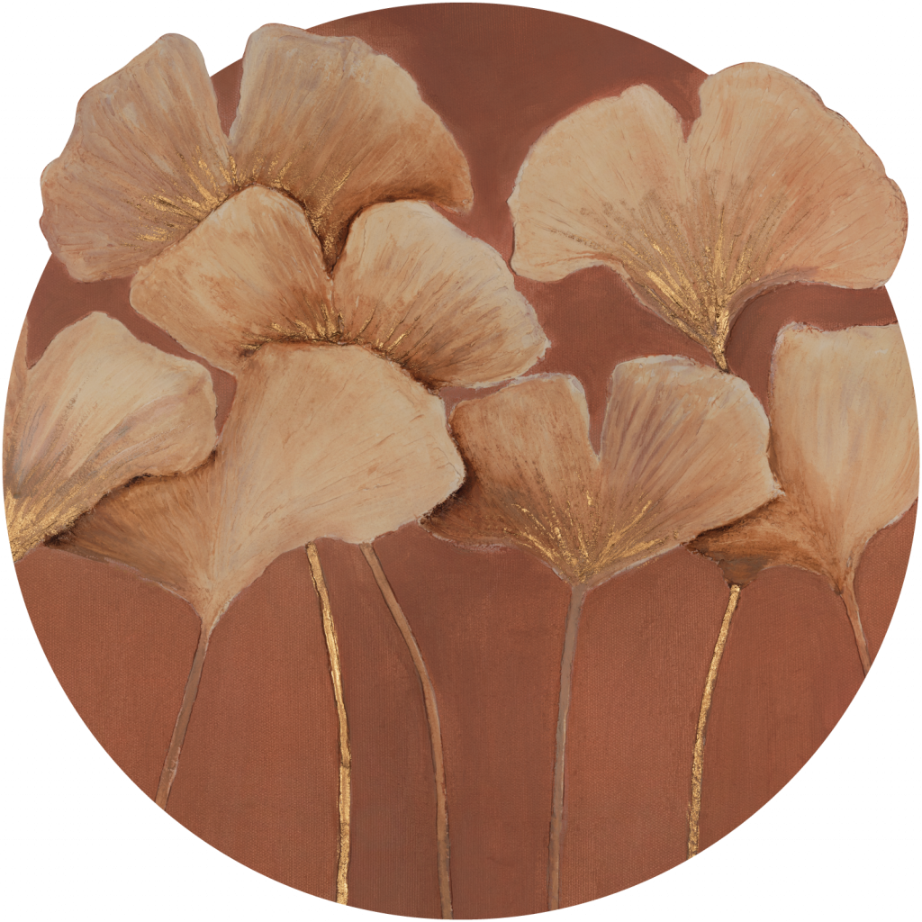 Spumante niczym prawdziwy szampan jest niepowtarzalny, ekskluzywny, a jednocześnie bardzo uniwersalny w odbiorze. Ręcznie malowany miłorząb japoński z delikatnymi złotymi zdobieniami doda splendoru każdemu pomieszczeniu. Umieszczenie roślin na tle w kolorze bardzo modnej, a jednocześnie ponadczasowej terracotty dodaje pomieszczeniu ciepła i elegancji. Badanie nad szampanem potwierdzają, że jego konsumpcja poprawia pamięć przestrzenną, z kolei Spumante poprawi każdą przestrzeń w naszym domu.