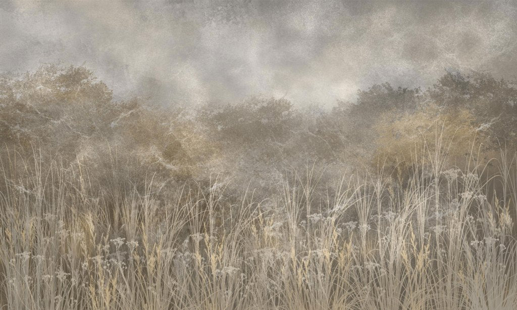 Tatarac przedstawia spokojny krajobraz utrzymany w stonowanych odcieniach beżu i szarości, co nadaje mu melancholijny i nostalgiczny charakter. Na pierwszym planie widoczna jest wysoka trawa, z kolei w tle dostrzeżemy drzewa, również utrzymane w tych samych stonowanych barwach. Ich kontury są delikatnie zamglone, co może przywodzić na myśl poranny mglisty krajobraz. Brak jaskrawych kolorów i dominacja beżu oraz szarości sprawiają, że obraz emanuje spokojem i ciszą. Jest to scena, która wydaje się zamyślona, idealna do kontemplacji i refleksji. Melancholijny charakter krajobrazu podkreślają delikatne przejścia tonalne i harmonijne zestawienie kolorów, tworząc wizualnie spójną i estetycznie przyjemną kompozycję.