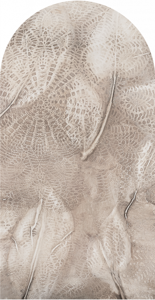 Tapeta „Vento” to poetycka interpretacja natury – subtelny kolaż liści, których finezyjne unerwienie i struktury zostały utrwalone w dekoracyjnej fakturze przypominającej koronkowy odcisk. Wzór przywodzi na myśl rośliny poruszane lekkim wiatrem – stąd nazwa inspirowana włoskim słowem „vento”, czyli wiatr. Dzięki technice tworzenia faktury bezpośrednio na powierzchni, liście zyskują niezwykłą lekkość i głębię – wyglądają niemal jak wydrapane w tynku.