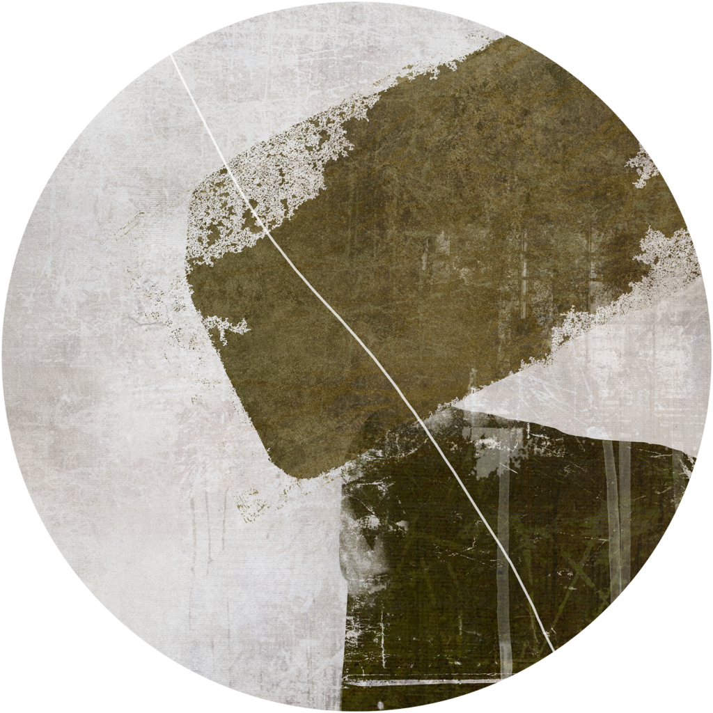 Tapeta „Verde” to propozycja dla miłośników minimalistycznej sztuki współczesnej i stonowanych wnętrz. Jej abstrakcyjny, ale wyważony charakter opiera się na organicznych formach i ziemistej kolorystyce, które razem tworzą spokojną, kontemplacyjną atmosferę. Kompozycję budują geometryzujące plamy w odcieniach zgniłej zieleni i oliwki, umieszczone na matowym, fakturalnym tle przypominającym przetartą powierzchnię płótna lub starego muru.