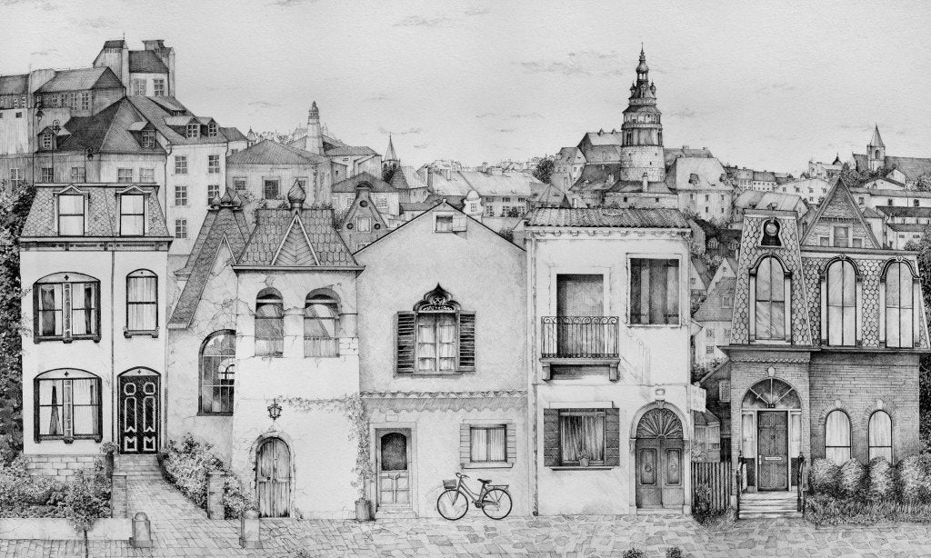 Vichy to delikatny rysunek miejskiego krajobrazu z szeregiem bajkowych, zabytkowych budynków. Na pierwszym planie widoczne są kamienice z dużymi oknami, drzwiami wejściowymi otoczonymi dekoracyjnymi elementami oraz roślinnością, która dodaje kompozycji naturalnego uroku. Wzór doda przestrzeni wyrafinowanego uroku i przyciągnie uwagę dzięki precyzyjnym liniom i złożonym detalom architektonicznym. Utrzymany w monochromatycznej tonacji odcieni szarości, będzie harmonijnie współgrał z różnymi stylami dekoracyjnymi, od klasycznych po nowoczesne. Doskonale sprawdzi się jako element wystroju wnętrz, nadając im elegancji i historycznego charakteru. Vichy to niezwykle harmonijny i spokojny wzór, zapraszający odbiorcę do długiego przyglądania się i odkrywania różnych elementów kompozycji. To dzieło idealnie oddaje urok i piękno zabytkowej europejskiej architektury, wprowadzając nastrój nostalgii i refleksji.