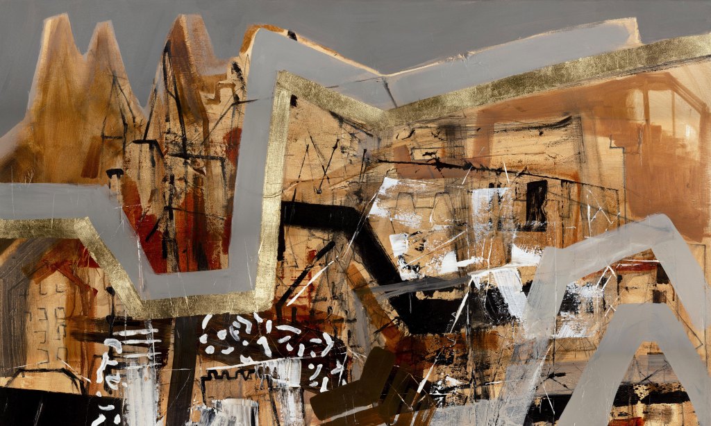Figaro to abstrakcyjna kompozycja, która łączy elementy geometryczne z wyrazistymi teksturami i dynamicznymi liniami. Dominujące ciepłe odcienie brązu, beżu i złota tworzą energetyczną, a jednocześnie przytulną całość, a elementy szarości w tle dodają stonowania i harmonii. Różnorodne kształty i struktury, znajdujące się w centralnej części wzoru, przypominają fragmenty architektury lub abstrakcyjne konstrukcje, jednocześnie pozostawiając ogromne pole do własnej interpretacji. Nieregularne, dynamiczne linie, nadają Figaro ruchu i trójwymiarowości, które przyciągają wzrok i skłaniają do dłuższego zatrzymania się nad jego detalami. Figaro doskonale wpisuje się w nowoczesne, eklektyczne wnętrza, gdzie może stanowić główny punkt dekoracyjny. Jego złożoność i głębia sprawiają, że jest idealny do przestrzeni, które potrzebują wyrazistego, artystycznego akcentu, a dzięki neutralnej bazie kolorystycznej tła i ciepłym, ziemistym tonom, może harmonizować z różnymi stylami aranżacji, dodając im elegancji i wyrafinowania.