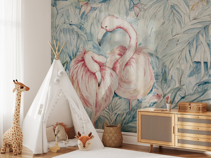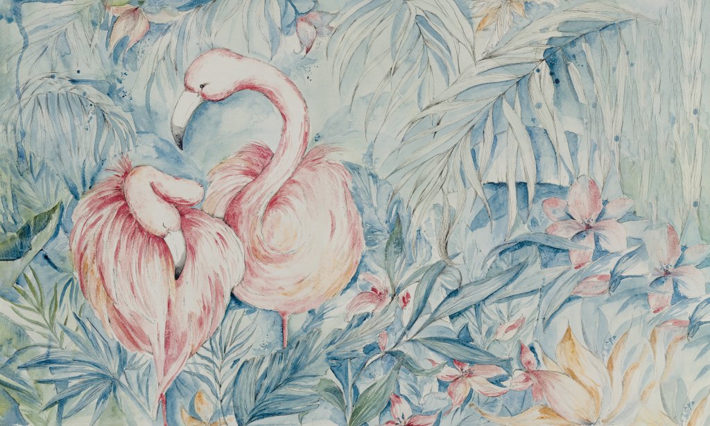 Malibu to artystyczna wizja tropików pędzla Pauli Poprawskiej. Osadzenie różowych flamingów na egzotycznej roślinności, która nie została przedstawiona w zieleni, a niebieskościach, jest mrugnięciem okiem do klasycznego podziału kolorów na różowe-dziewczęce i chłopięce błękity. Ręczne wykonanie metodą akwareli dodaje Malibu artystycznego sznytu, dzięki czemu umożliwia aranżację nie tylko w dziecięcym pokoju.