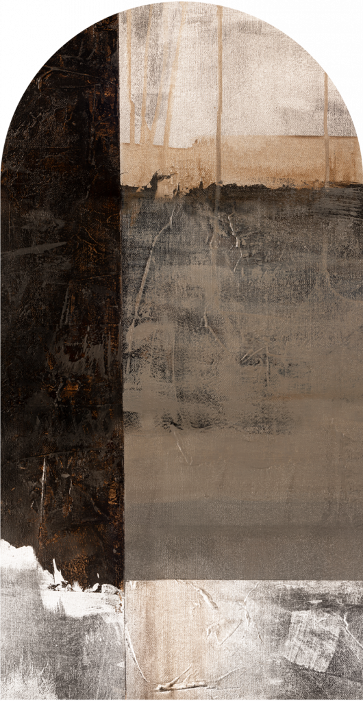 „Nux” to abstrakcyjna kompozycja o wyraźnie malarskim, niemal surowym charakterze. Wzór składa się z horyzontalnych pasów i prostokątnych płaszczyzn o zróżnicowanej fakturze – od miękkich, niemal kredowych przetarć, po gęste, ciemne warstwy przypominające spatynowany metal lub ziemistą glinę. Całość przywodzi na myśl strukturalne obrazy współczesnych artystów, łączących malarstwo z materią – zacierających granice między płótnem a przestrzenią. „Nux” balansuje pomiędzy gestem a kontrolą, przypadkowością a kompozycją – tworząc tło, które nie dominuje, ale buduje głęboki, spokojny klimat wnętrza. To wzór, który nie narzuca interpretacji – raczej zostawia miejsce na refleksję i emocjonalny odbiór.