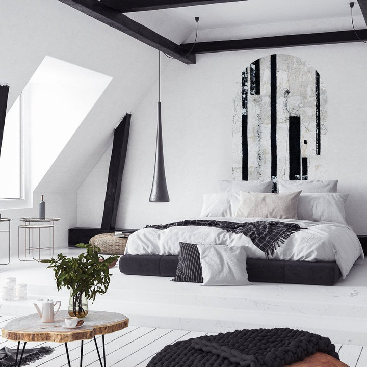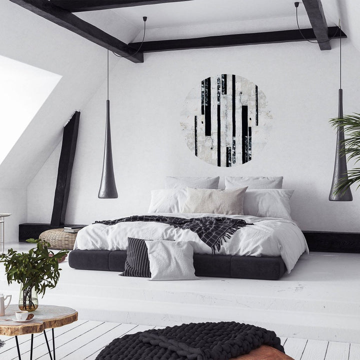 Umieszczony na ścianie w salonie, gabinecie lub przedpokoju, będzie przyciągał wzrok i dodawał przestrzeni elegancji oraz nowoczesności. Jego prostota sprawia, że dobrze komponuje się z meblami o prostych liniach, metalowymi akcentami oraz naturalnymi materiałami, takimi jak drewno czy beton. Dodatkowo, może być doskonałym tłem dla designerskich dodatków, takich jak metalowe lampy, szklane stoliki czy minimalistyczne półki.