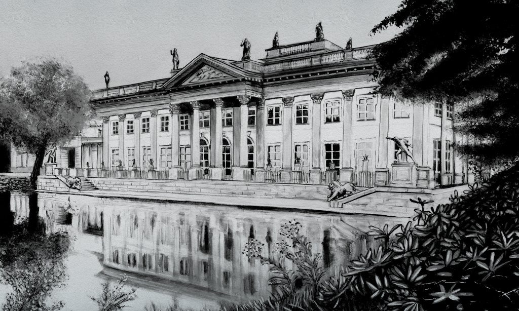 Royal to graficzna interpretacja letniej rezydencji ostatniego króla Polski – Stanisława Augusta Poniatowskiego, znajdująca się w warszawskich Łazienkach. Elegancki pałac z kolumnadą, usytuowany nad wodą, której spokojna powierzchnia odbija architekturę budynku to codzienny krajobraz. Otoczony jest przez bujną roślinność, co nadaje całości malowniczego uroku. Royal wniesie do przestrzeni poczucie klasycznej elegancji i majestatyczności. Idealnie nadaje się do salonu urządzonego w stylu klasycznym lub eklektycznym, gdzie będzie centralnym punktem dekoracyjnym, przyciągającym wzrok i dodającym głębi wnętrzu. Jego monochromatyczna kolorystyka sprawia, że doskonale komponuje się z różnymi paletami barw, wprowadzając jednocześnie subtelny, lecz wyrafinowany akcent. Dzięki swojej kompozycji, Royal może również doskonale sprawdzić się w przestrzeniach publicznych, takich jak hotele czy restauracje, gdzie podkreśli prestiż miejsca i zapewni odwiedzającym estetyczne doznania.