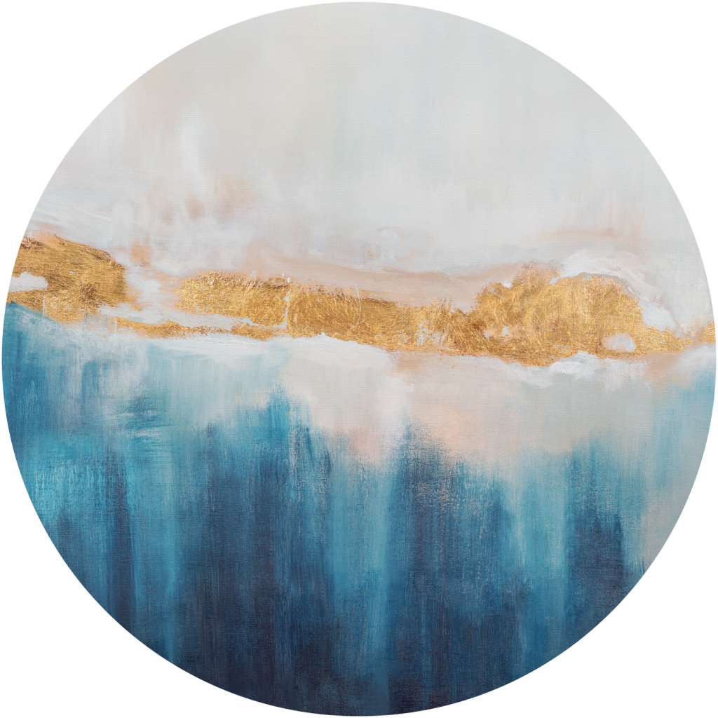 Junona - według mitologii rzymskiej - królowa bogów, bogini małżeństwa i rodziny. Przepiękny ręcznie malowany wzór w kolorach turkusu, błękitu, bieli, oraz pas w kolorze złota- przynosi na myśl morską toń lazurowego wybrzeża, a złote barwy mogą przypominać koronę na głowie bogini. Świetnie sprawdzi się w sypialni, salonie, łazience i kuchni.