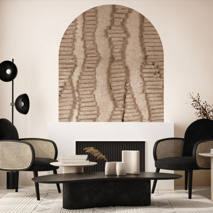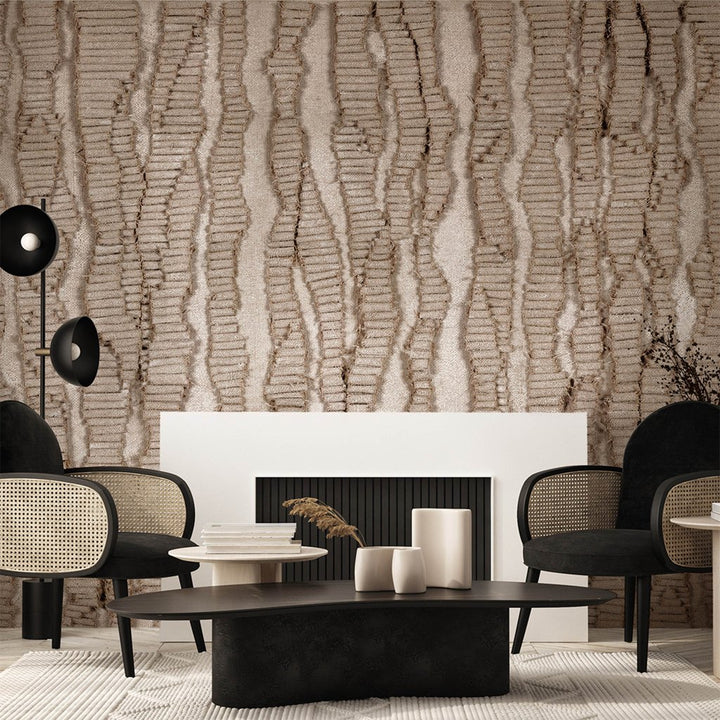 Dominują naturalne odcienie beżu, jasnego piaskowca i lnianej bieli. Kolorystyka jest osadzona w palecie ziemi – ciepła, neutralna, kojąca. Wzór harmonijnie łączy się z naturalnymi materiałami: drewnem, kamieniem, surowym tynkiem.