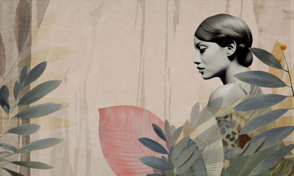 Onna Olive przedstawia profil kobiety otoczonej bujną roślinnością w odcieniach zieleni, oliwki, różu i żółci. Jej spokojne, zamyślone oblicze dodaje obrazowi subtelnego, eleganckiego charakteru. Tło jest delikatne, co sprawia, że sylwetka oraz liście wyróżniają się na pierwszym planie, tworząc harmonijną i wyrafinowaną kompozycję. Onna Olive doskonale wpasuje się we wnętrz, w których celem jest podreślenie elementu elegancji i spokoju. Świetnie wkomponuje się w nowoczesne, minimalistyczne aranżacje, gdzie prostota form i kolorów jest kluczowa.