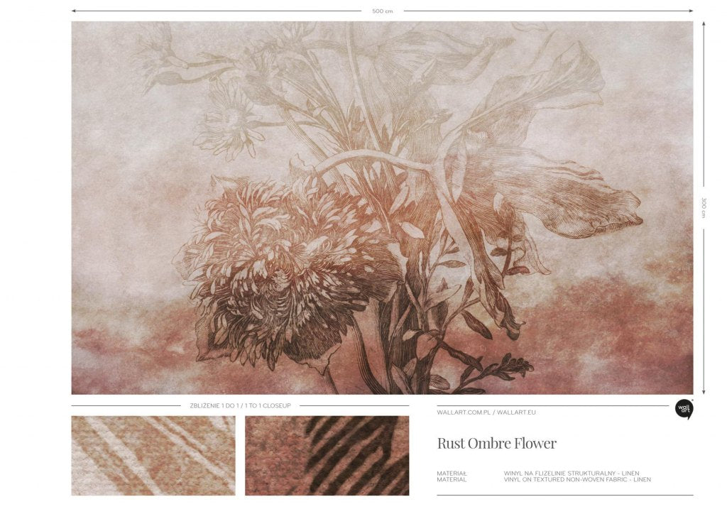 Rust Ombre Flower to wzór powstały z połączeni struktury ombre w kolorach beżu, brązu i rudości, oraz tatuażu ze wzoru Grey Flower. Połączenie ombre z motywem roślinnym nadaje tapecie niezwykłej elegancji i lekkości.