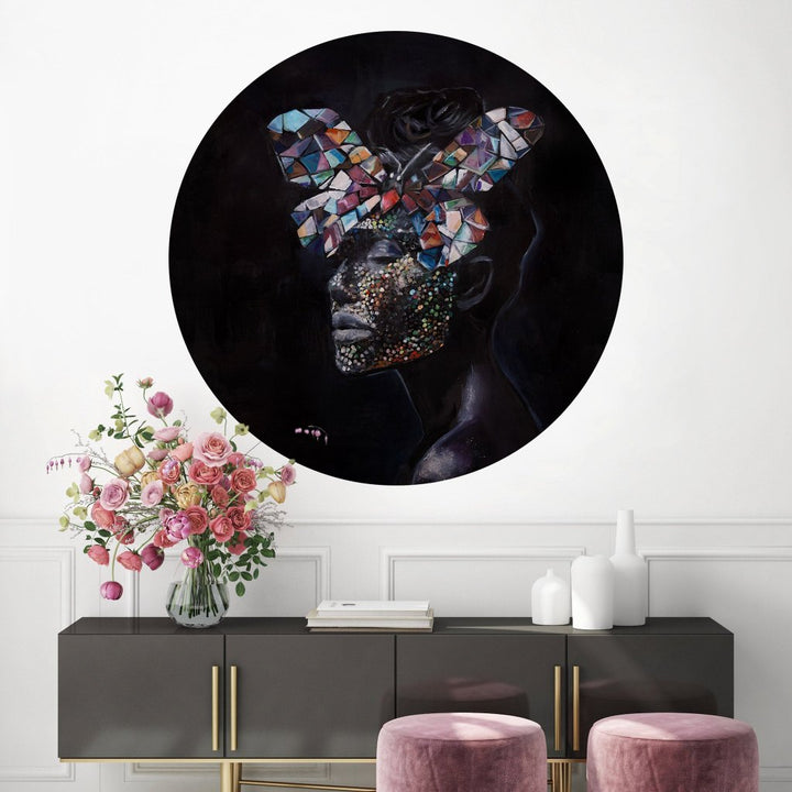 Nasze koła mają średnicę 130 cm i są drukowane na samoprzylepnym winylu o subtelnej strukturze płótna. To materiał, który prezentuje się lekko i elegancko, a jednocześnie jest zmywalny i trwały. Dzięki temu możesz je bez obaw stosować nie tylko na ścianie, ale również na meblach, drzwiach czy szkle – wszędzie tam, gdzie chcesz dodać wnętrzu charakteru.