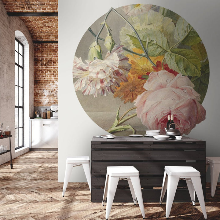 Nasze koła mają średnicę 130 cm i są drukowane na samoprzylepnym winylu o subtelnej strukturze płótna. To materiał, który prezentuje się lekko i elegancko, a jednocześnie jest zmywalny i trwały. Dzięki temu możesz je bez obaw stosować nie tylko na ścianie, ale również na meblach, drzwiach czy szkle – wszędzie tam, gdzie chcesz dodać wnętrzu charakteru.