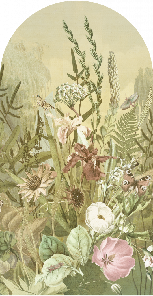 Bloom przedstawia niezwykle bujną łąkę, pełną wysokich traw i kwiatów, które razem tworzą malowniczy i sielankowy krajobraz. Na pierwszym planie widać gęste, wysokie trawy, przeplatane bujnymi kwiatami. Ich różnorodne odcienie, od jasnych po ciemniejsze, dodają głębi i dynamiki całemu krajobrazowi. Rozkwitające wśród trwa liczne kwiaty, tworzą naturalne bukiety, a dominujące wśród nich pastelowe odcienie różu, subtelnie kontrastują z zielenią traw, nadając scenie kolorystycznej różnorodności. Cała scena jest idealnie wyważona, z dbałością o detale, co sprawia, że obraz jest nie tylko piękny wizualnie, ale także emanuje naturalnym spokojem i harmonią.Bloom to romatyczny wzór idealny to kobiecych wnętrz w klasycznym stylu.