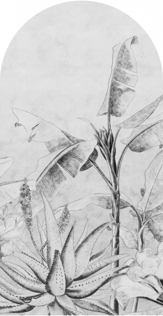 Tapeta Rainforest Sketch to połączenie motywu tropikalnych liści z betonowym tlem. Idealne uzupełnienie aranżacji w małych wnętrzach, pasuje do stylu loftowego, minimalistycznego , nowoczesnego skandynawskiego.