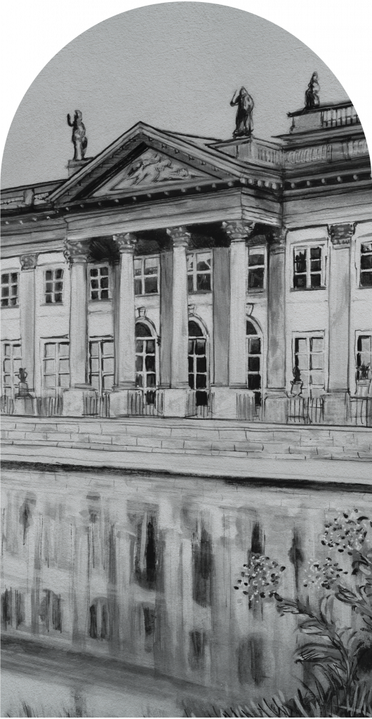 Royal to graficzna interpretacja letniej rezydencji ostatniego króla Polski – Stanisława Augusta Poniatowskiego, znajdująca się w warszawskich Łazienkach. Elegancki pałac z kolumnadą, usytuowany nad wodą, której spokojna powierzchnia odbija architekturę budynku to codzienny krajobraz. Otoczony jest przez bujną roślinność, co nadaje całości malowniczego uroku. Royal wniesie do przestrzeni poczucie klasycznej elegancji i majestatyczności. Idealnie nadaje się do salonu urządzonego w stylu klasycznym lub eklektycznym, gdzie będzie centralnym punktem dekoracyjnym, przyciągającym wzrok i dodającym głębi wnętrzu. Jego monochromatyczna kolorystyka sprawia, że doskonale komponuje się z różnymi paletami barw, wprowadzając jednocześnie subtelny, lecz wyrafinowany akcent. Dzięki swojej kompozycji, Royal może również doskonale sprawdzić się w przestrzeniach publicznych, takich jak hotele czy restauracje, gdzie podkreśli prestiż miejsca i zapewni odwiedzającym estetyczne doznania.